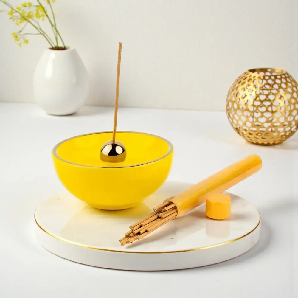- تتميز هذه المبخرة بقاعدتها الدائرية التي تمنحها استقراراً عند وضعها على السطح، كما تأتي بلون أصفر مبهج يجذب الانتباه ويضفي جواً من السعادة والحيوية.