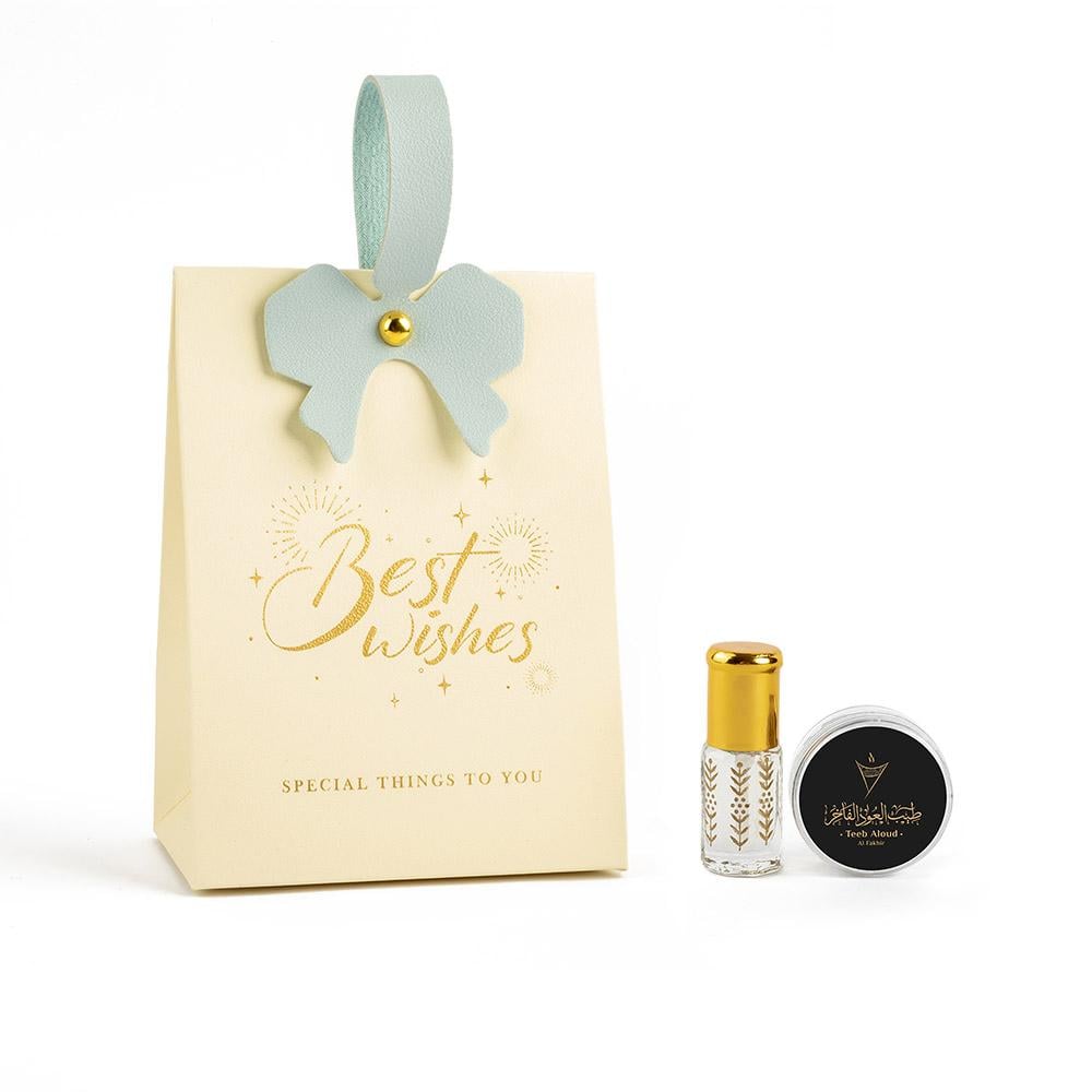- المكونات: ربع تولة من مسك الختام الفاخر + عبوة تبخيرة عود معطر