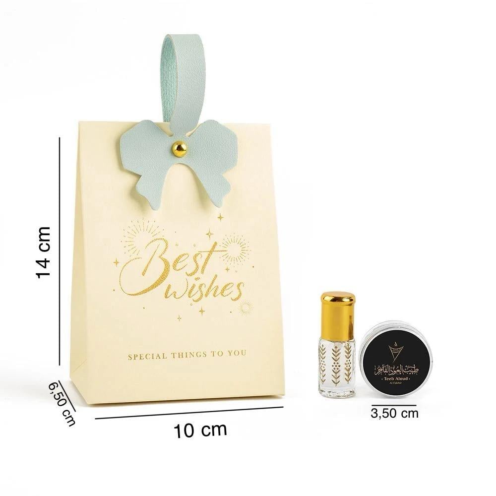 - تحتوي التوزيعة على مسك الختام الفاخر، ليمنح الضيوف عطرًا يدوم ويترك بصمة لا تُنسى.