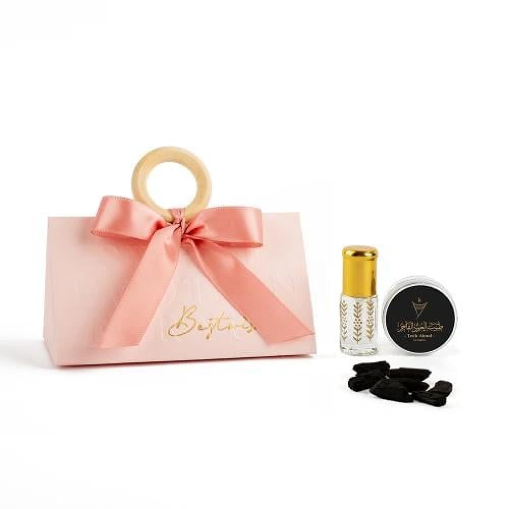 - المكونات: ربع توله من مسك الختام الفاخر + عبوة عود معطر